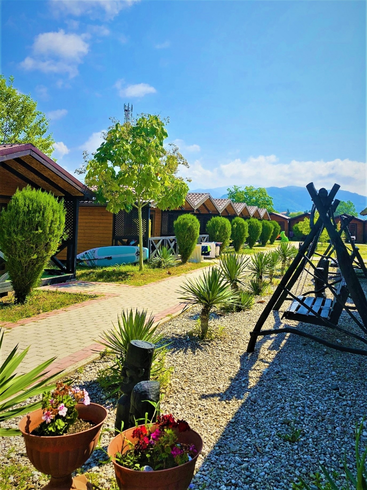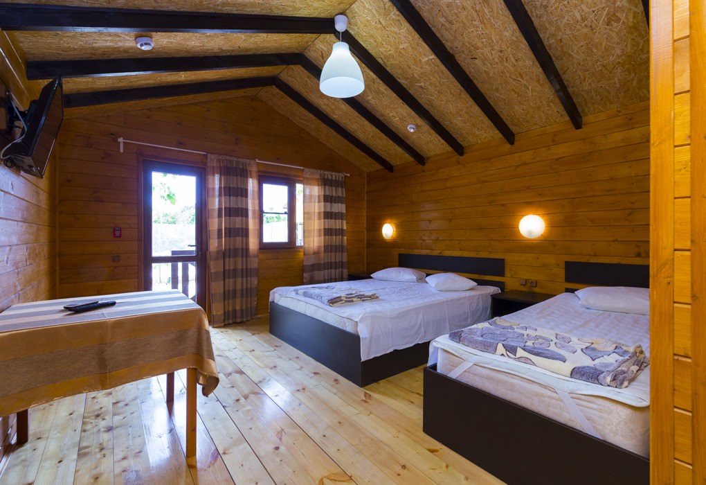 Еврокоттеджи базы отдыха построены из экологически чистых материалов, потому в их нет духоты и сырости. Современные удобства также являются решающим словом для летнего отдыха всей семьей. В номерах есть кондиционер, холодильник, ТВ и удобный санузел с душем.